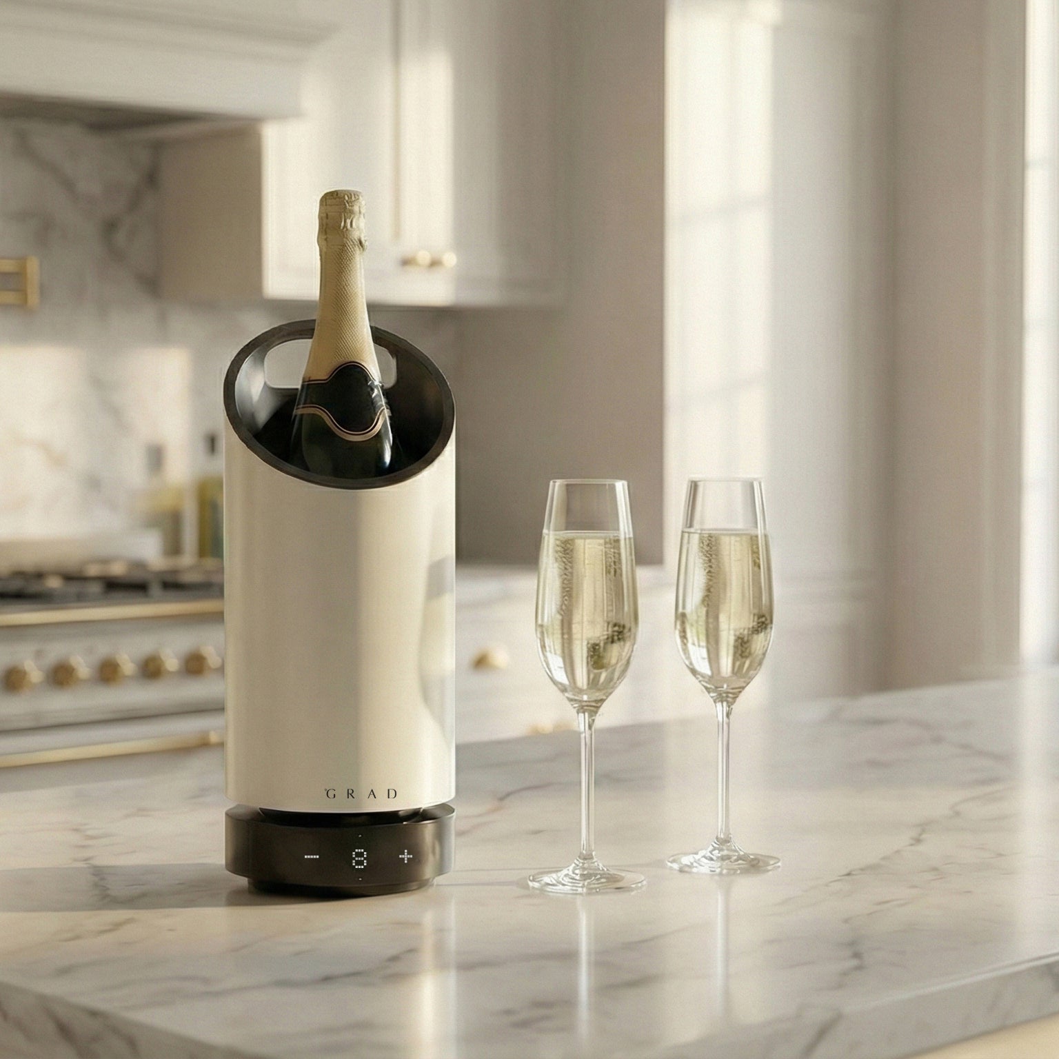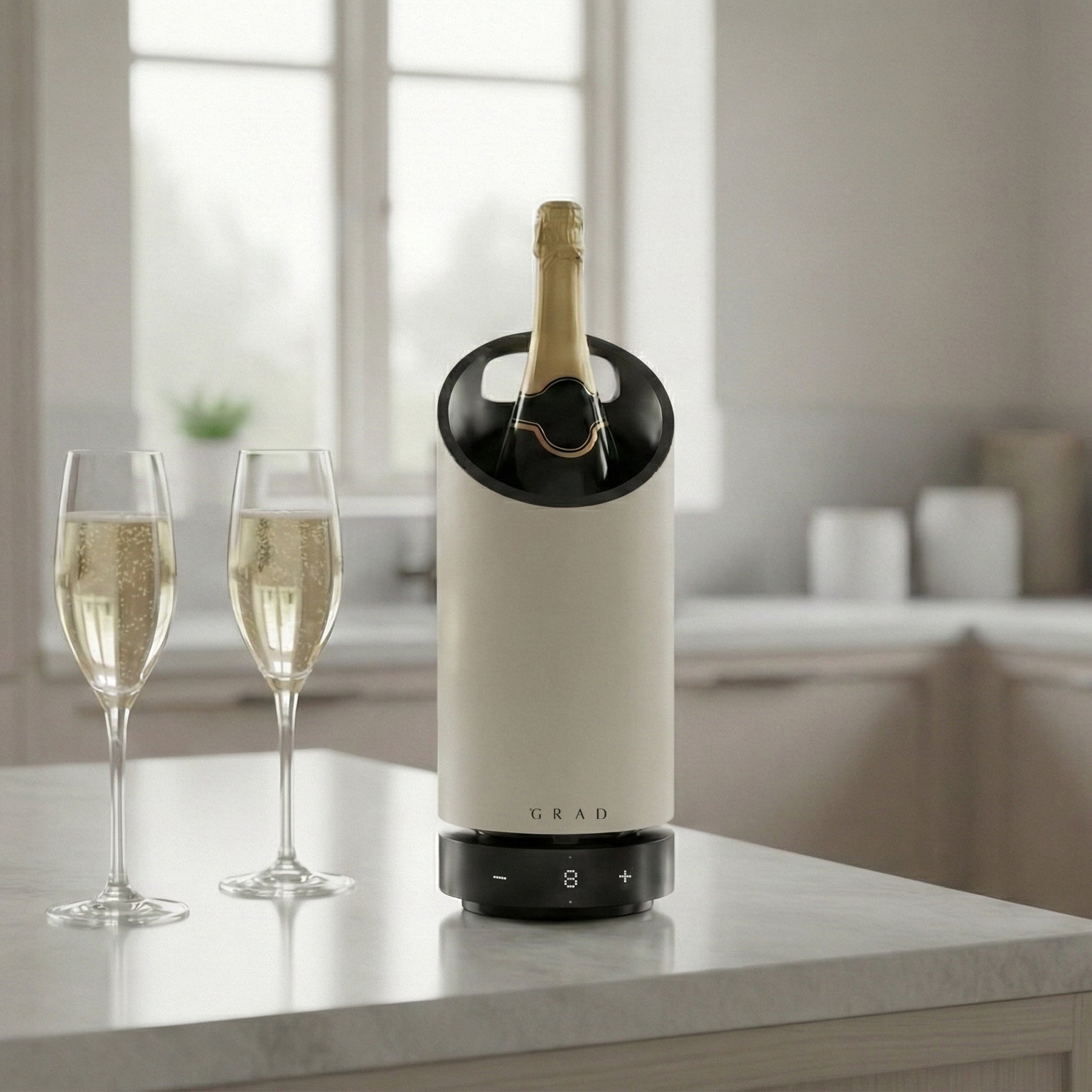 GRAD No.1 è un innovativo refrigeratore per vino ricaricabile che mantiene il vino alla temperatura ideale di degustazione durante il servizio, per il massimo piacere ad ogni bicchiere.