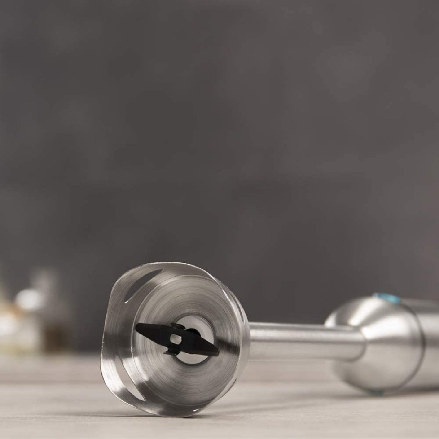 Frullatore a immersione da 1500 W, tecnologia CrossBlades con 4 lame, rivestimento in titanio nero, piede XL extra-lungo, campana anti-schizzi e selettore della velocità progressivo con funzione Turbo. Include recipiente da 800 ml con coperchio, fruste montapanna e tritatutto con lame per il ghiaccio. Frullatore a immersione da 1500 W di potenza massima, perfetto per composti fini e omogenei in modo rapido e senza sforzi.